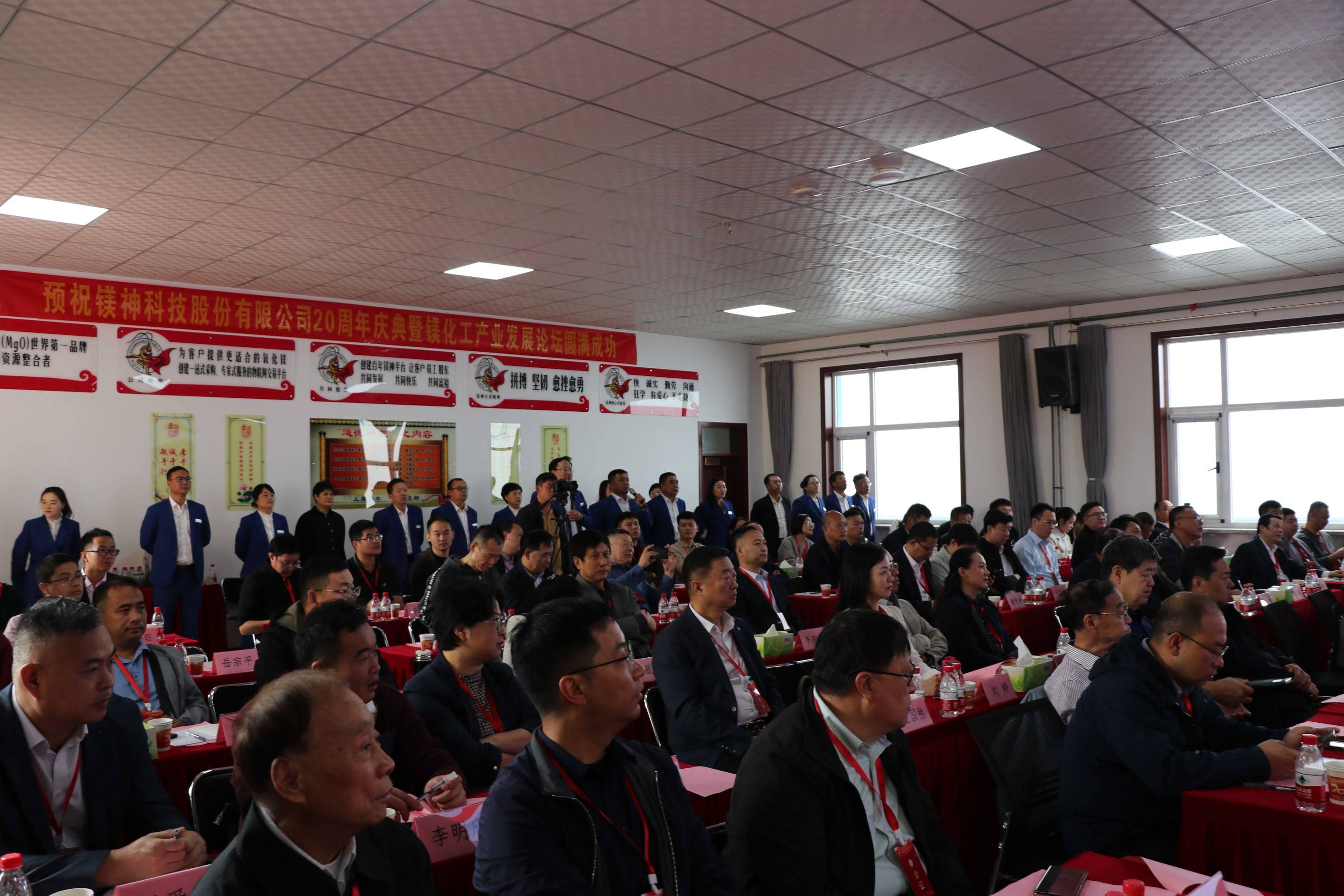 賓客代表:澳大利亞華人控股集團董事長/澳大利亞國際文化產業協會會長楊志唯、供應商代表西部鎂業副總經理宋磊、銀行代表中國建設銀行廣宗支行副行長張新轍、河北科技大學常務副校長胡永琪教授、中國無機鹽協會副秘書長栗歆、廣宗縣委副書記王力分別上臺致辭,慶祝鎂神二十周年!
